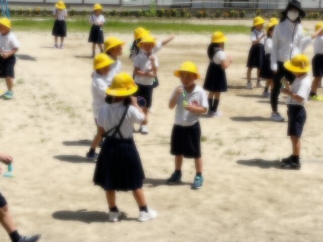 ご覧のように、鉢にはそれぞれペットボトルが備え付けられていて、水分補給ができるようになっていますが、連日の晴天のため、子供たちは朝から念入りに水やりもがんばっています。