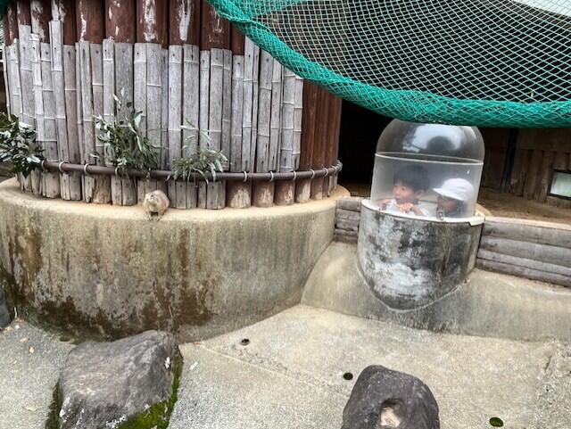 最初は、クラス別に園内を一周しました。動物たちを間近で見られるので、子供たちも大興奮!なかなか次のブースに行けないほど観覧していました。