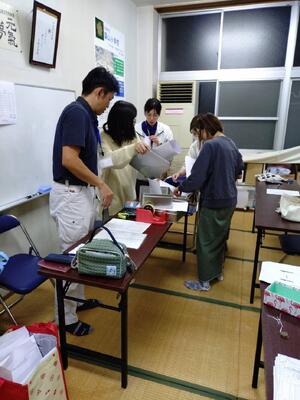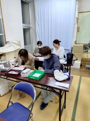 昨日の夜に集まり、バザー申し込みの集計、金額の確認をしていただきました。