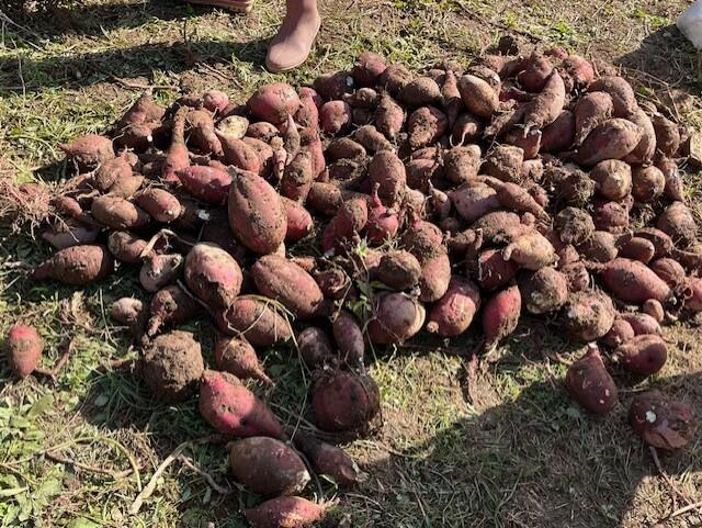 明け方までの雨が心配されましたが、無事に土を掘り返すことができて、たくさんのさつまいもがとれました。