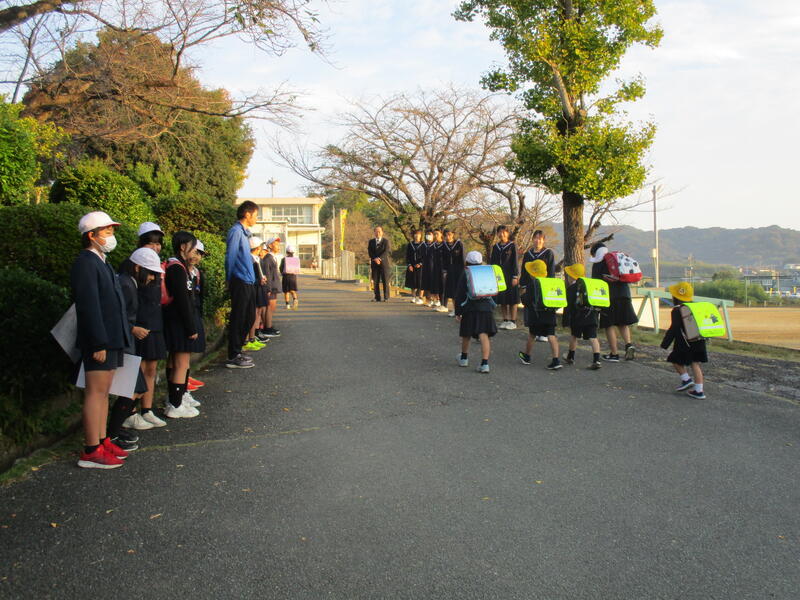 築山支館長の坂本さん(元本校校長)も一緒にあいさつ運動に参加されました。
