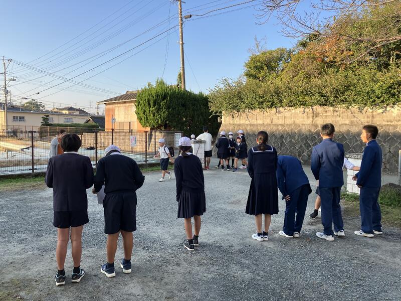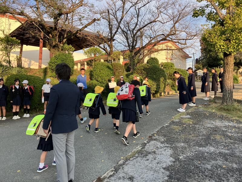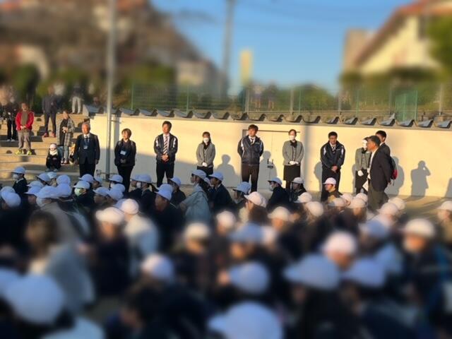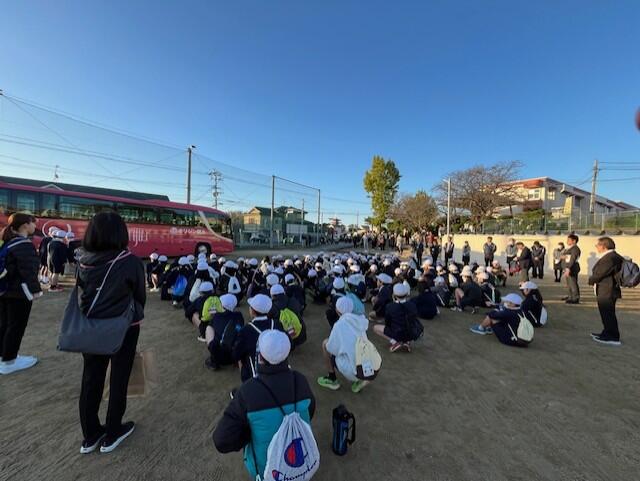 6年生は、今日から1泊2日で長崎方面に修学旅行です。冷え込んだ早朝、運動場で出発式を行い、元気に出発しました。