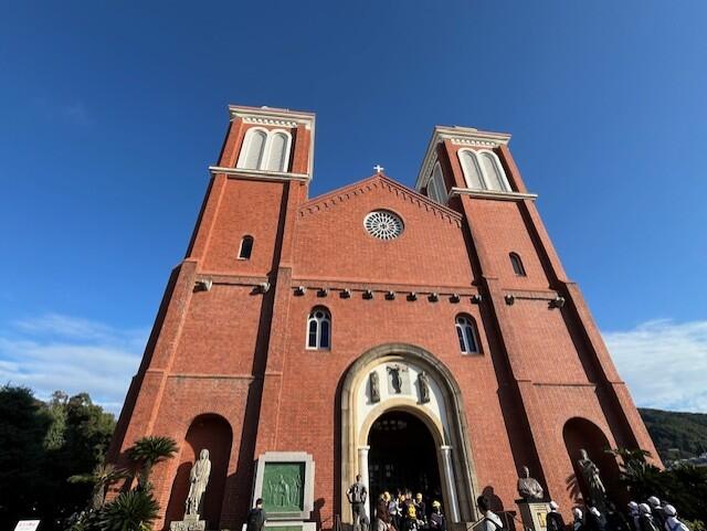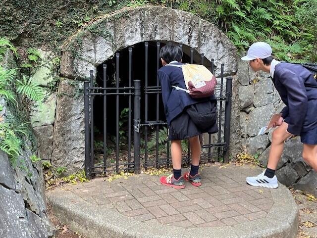 フィールドワークでは、平和公園周辺の各所をめぐりました。ボランティアガイドさんの説明を聞きながら、原爆落下中心地、平和公園、浦上天主堂、如己堂、山里小学校を訪ねました。