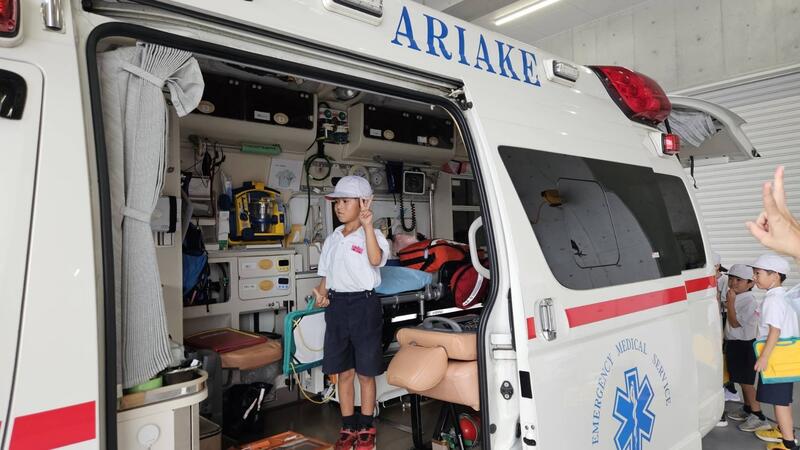 有明広域消防本部から4名の署員の方を講師にお招きし、緊急時の心臓マッサージやAEDの使い方などを教えていただきました。