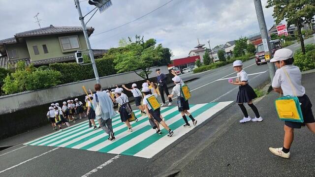 ボランティアの方々の協力もあって、3,5年生は自転車の乗り方(実際に歩道や信号を渡る)、2年生は横断歩道の歩き方などを実際に道路を使って行いました。(あらかじめ玉名警察署にも使用許可は取ってあります)