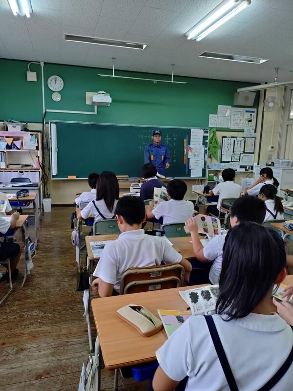 先週から各クラスで消防署見学をしてきましたが、今日が第4弾。4組の子供たちが行ってきました。4クラスの中では最も天候に恵まれた中で行ってきました。(蒸し暑かったのですが…)