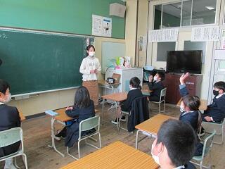 今日は、冬休み前の後期前半の最後の日でした。朝から、オンライン集会を実施しました。内容は、まず、校長先生からの子供たちの成長の様子を認めていただきました。次に生徒指導担当から、休み中のしてほしくない行動や自転車の乗り方について話がありました。最後は、養護教諭より生活のリズム、メディアとの付き合い方、バランスの良い食事、歯の治療推進、感染対策の5点について話がありました。約2週間の冬休みが安全で健康な生活になってくれることを願ってます。