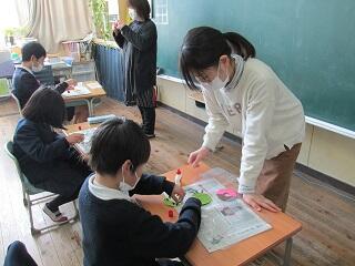 2月15日(水)なかよし2組では、講師に地域ボランティアの松澤様をお迎えして、小物作り(コースター)を行いました。ドーナツやフルーツの柄のコースターをそれぞれ工夫し、素敵な作品に仕上げました。