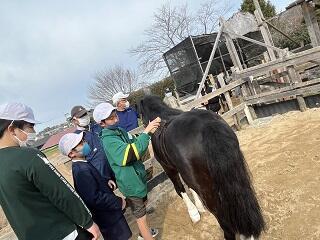 3月1日(水)なかよし3・4・5組の子どもたちが楽しみにしていたポニー公園へ行きました。ヤギやうさぎ、モルモット、ポニーなどの動物と触れ合いました。貴重なえさやり体験や乗馬体験をさせていただきました。子どもたちは、大きな動物に怖がりながら、始終笑顔で楽しい時間でした。