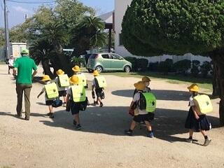 1年生の下校の様子です。今日は気温が上がり暑い中の下校でした。地域のボランティアの皆様の見守り大変ありがとうございます。