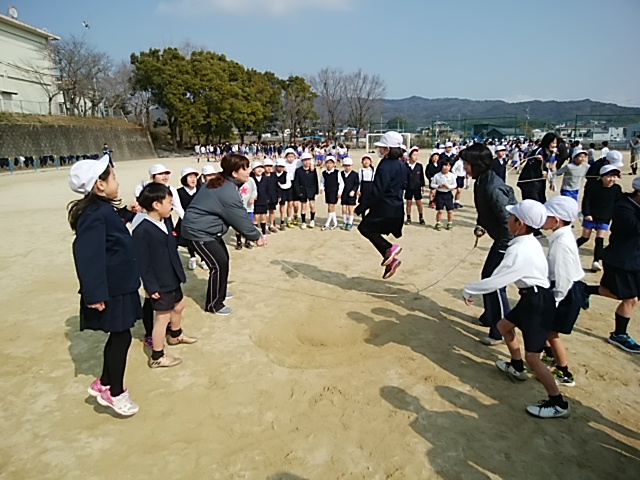 2月22日(木)全校体育の時間に、長縄跳び大会がありました。