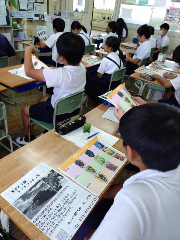 今回は、6年3組の子供たちが、校区にぶどう園を多数展開されている東さんにお話をしていただきました。