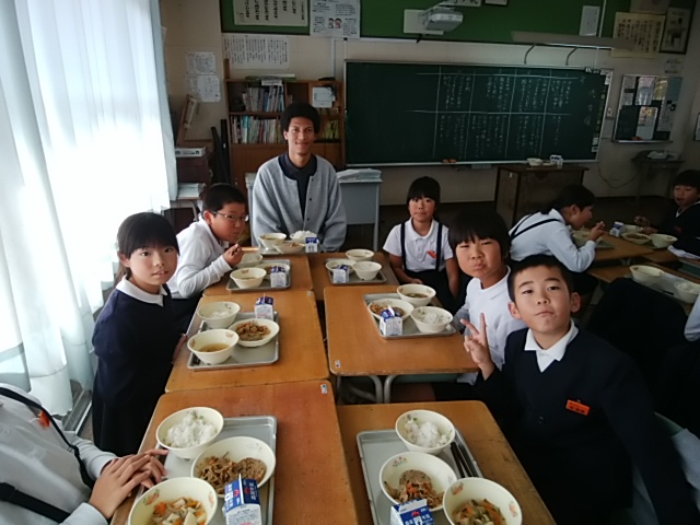 12月5日(水)ALTのコール先生が4の3で一緒に給食を食べました。