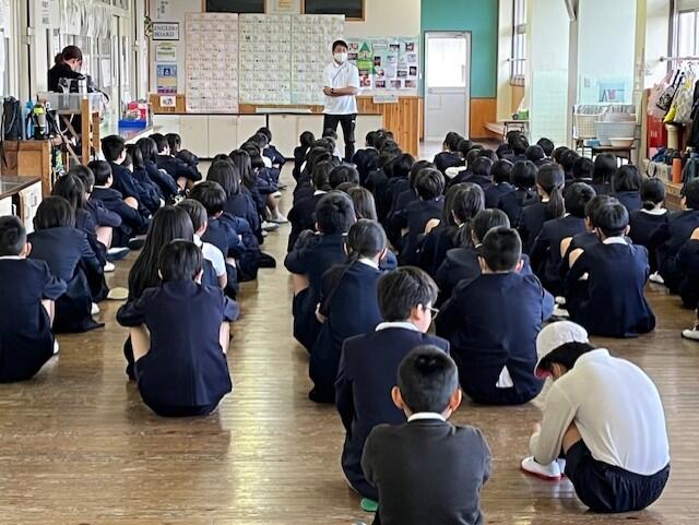 ろうかや体育館、音楽室などに分かれて子供たちに伝えられていきました。