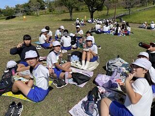 集団宿泊教室の2日目の午前中は、グループごとに分かれてのペーロン船の体験活動を行いました。仲間と櫂(かい)をこぎ、心をそろえる大切さを学びました。その後は、みんなで野外での昼食です。
