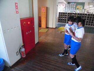 昨日、3年生は社会科の単元「火事から町をまもる」の学習において、学校内の防火設備についてグループで調べていました。学校にも多くの防火設備・消火器具などがたくさんあることを自分たちの目と足で発見していました。