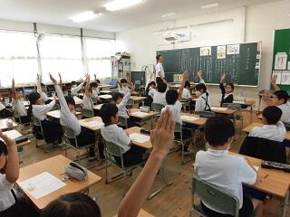 午後からくまもと障害者労働センターの倉田哲也さんをお招きして、4~6年生に人権教育の講演会を行いました。倉田さんの生い立ちや願いを聞き、自分や周りの人を大切にする心についてしっかり学んでいました。