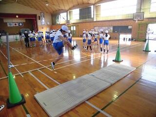 本日、4年生は体育館で走り高跳びの練習を行いました。助走、踏み切り、空中フォーム、着地を意識しながら何回も高く跳び上がれるよう頑張っていました。