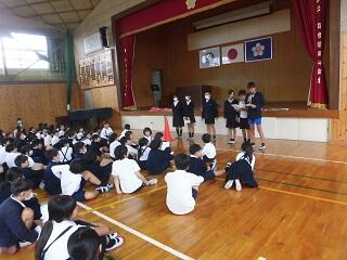 ふれあい音楽委員会の運営のもと、白団・赤団・青団ごとに分かれて「ふれあい活動」が体育館で行われました。運動会以来の各団ごとの集まりでしたが、ピラミッドじゃんけんや猛獣狩りゲームをして異学年交流ができました。
