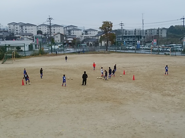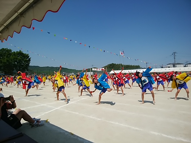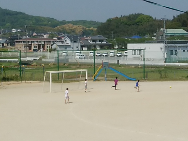 4月30日(日)運動場で5年生と中学生がサッカーを楽しんでいました。