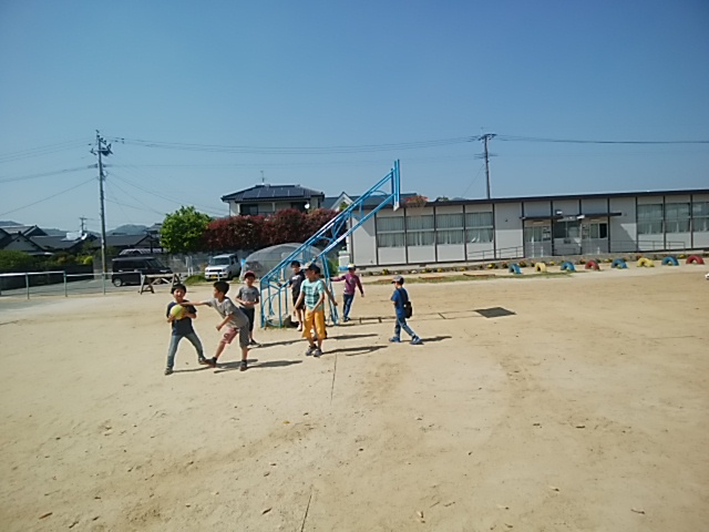 4月29日(土)祝日で学童クラブがお休みです。1年、2年、3年の子どもたちが、上の運動場で遊んでいました。