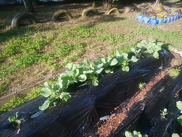 4月28日(金)3年生の理科でモンシロチョウを観察するためにキャベツを植えています。よく育ってきました。