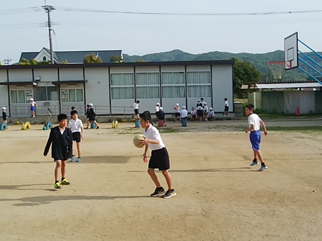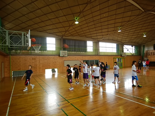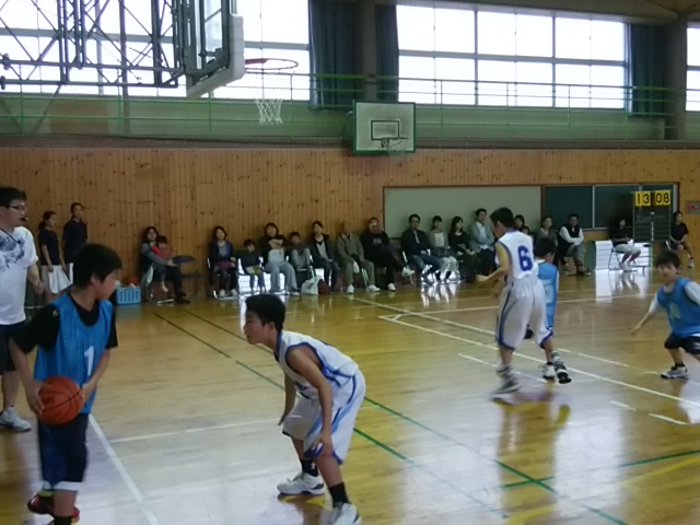 4月8日(土)体育館でバスケ部が、万田小と練習試合をしていました。
