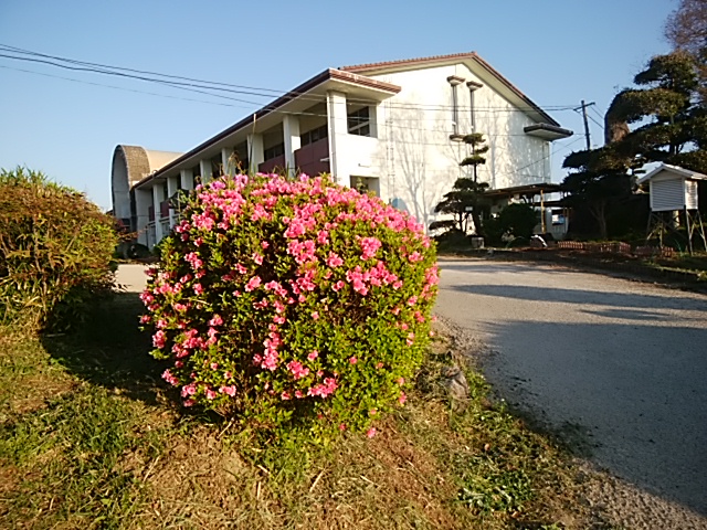 4月24日(月)藤の花とともにツツジも花が咲いて、子どもたちの登校を待っています。