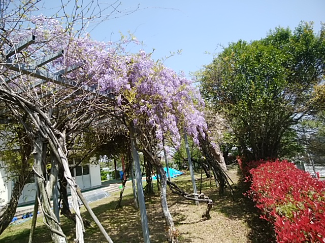 4月22日(土)南校舎の南(道路)側藤の花がきれいに咲いています。