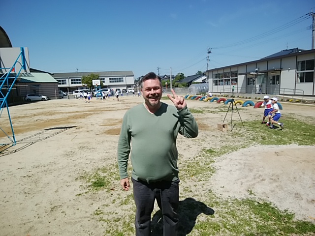 4月19日(水)ALTのジェイムズ先生が来校されました。週に1~2回英語の授業をされます。朝早くから子どもたちとふれ合っておられます。