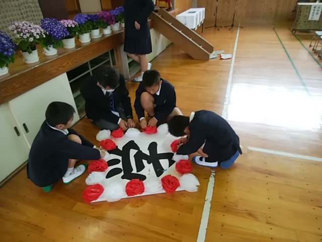 4月10日(月)午後から6年生と職員で、入学式の準備をしました。6年生がものすごくがんばってくれるので、とても助かっています。すばらしい6年生です。