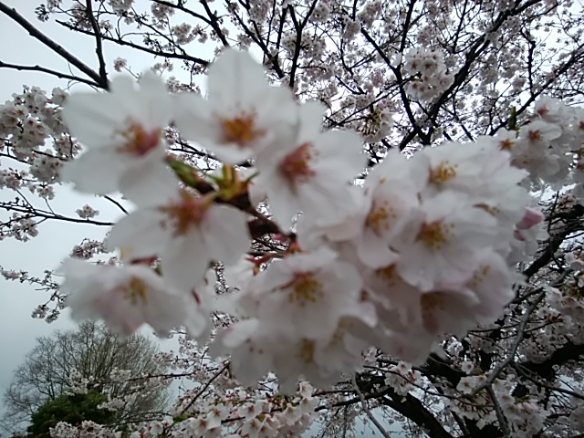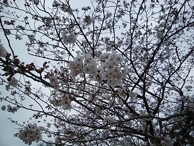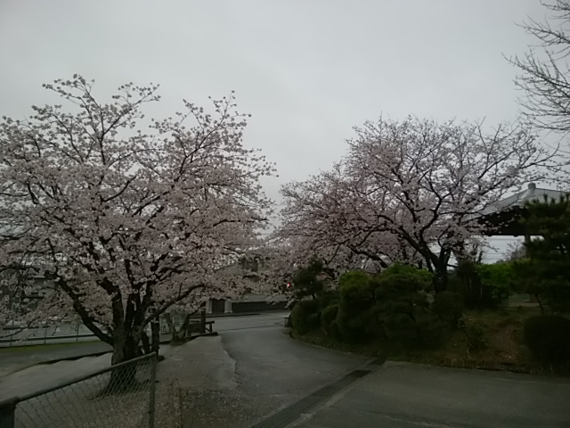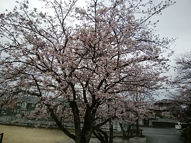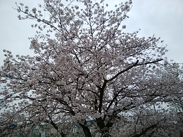 4月9日(日)桜の花が満開です。ただ、天気が悪くて…