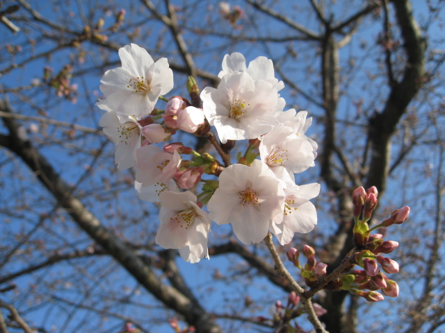 4月4日(火)暖かくなり、咲いている桜が増えました。2分咲きぐらいです。