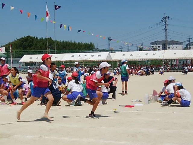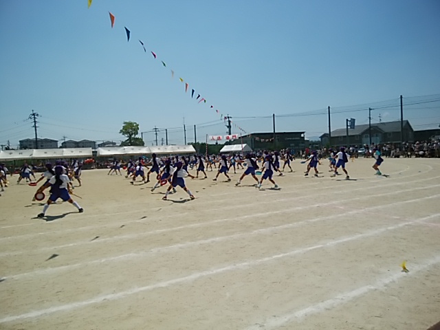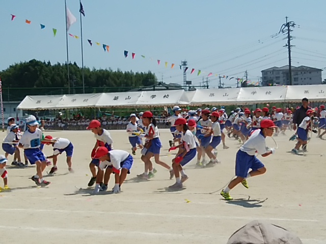 4月25日(火)家庭訪問中ですが、2クラスずつ体力テストの一部をやっています。