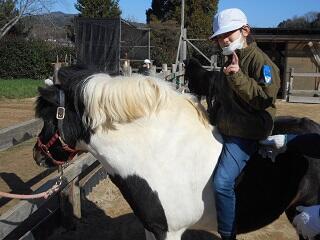 2月28日(火) なかよし1・2組の子どもたちが、楽しみにしていたポニー公園への見学。青いお目々のマーチとスプリングに乗りました。うさぎとモルモットの食欲にはみんなで大笑い。やぎのハートとメイちゃんとの散歩も楽しかったです。