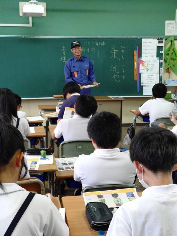 今回は、6年3組の子供たちが、校区にぶどう園を多数展開されている東さんにお話をしていただきました。