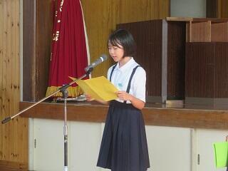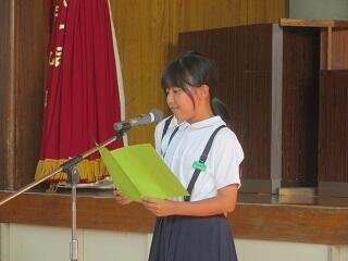 本日の朝から各学年を2つに分けて、3学年ずつの後期始業式が行われました。前期の終業式同様に落ち着いた態度で参加し、5名の児童が代表で後期のめあてを発表できました。