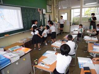 1年生は国語の授業で物語文「くじらぐも」を学習しています。文章の内容を理解し、登場しているくじらぐもや子供たちになりきって動作化をしていました。「天まで届け、1、2、3」の声がとても大きかったです。