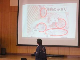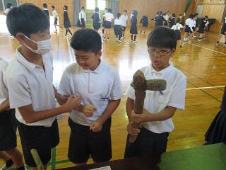 5年生は、熊本県教育庁文化課員の方たちに来校いただき、熊本県の文化財の歴史や復旧への取組について学びました。文化財に関する仕事をされている方たちの思いや願いを知り、守り受け継いでいくことの大切さを学びました。
