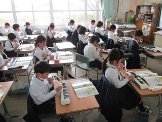 本日、2年生では音楽の時間に「二月のこぐま」の演奏を行いました。鍵盤ハーモニカを使って、二部合奏が上手にできていました。