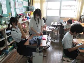 本日、なかよし1組教室において松澤さんに講師としてきていただき、小物づくり(小物入れとポケットティッシュカバー)を作りました。子どもたちはそれぞれが工夫をし、すてきな作品ができました。