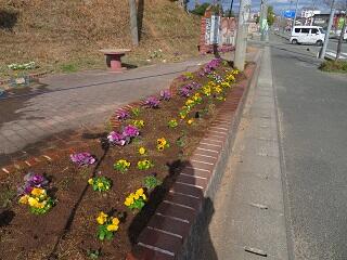 地域の方からいただいたパンジーを、3年生が協力してふれあい広場(正門の横側)に植えました。広場が明るくなり、綺麗な広場になりました。