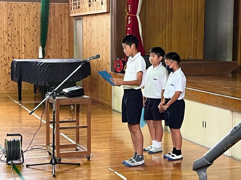 さらに、児童を代表して6年生の3名の子供たちが、前期の振り返りと後期の意気込みを発表してくれました。