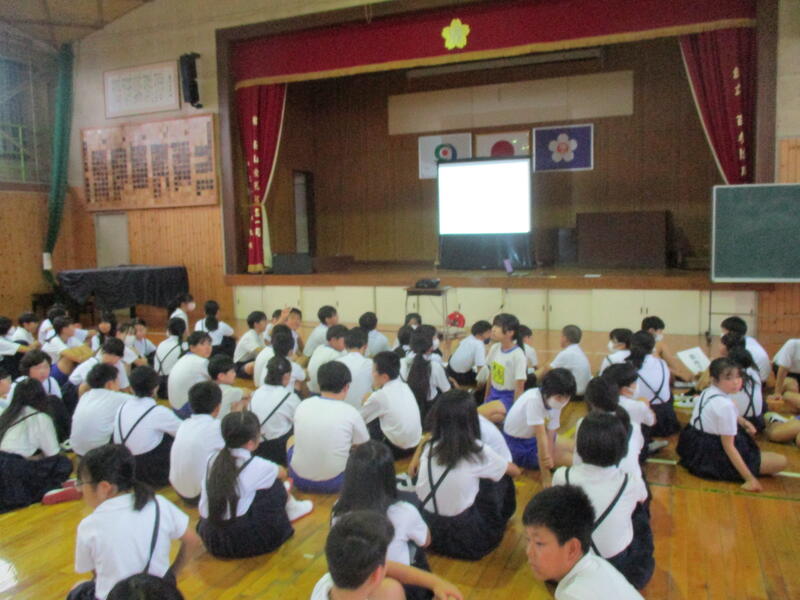 10日の朝活動で登校班長会議を行い、全登校班長115名が体育館に集まりました。