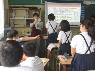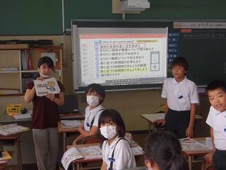 築山小学校では、中学年で外国語活動、高学年で外国語科の授業が行われています。今日の5時間目には木原英語専科とクリスティナ・ストライツ先生(ALT)が、教科に関する英語の表現をゲーム形式で覚える授業が行われていました。