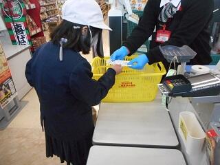 なかよし1・2組の児童はマルエイに行き、買い物体験学習をしました。お家の人に頼まれた物と好きなお菓子を選び、自分でお金を払いました。