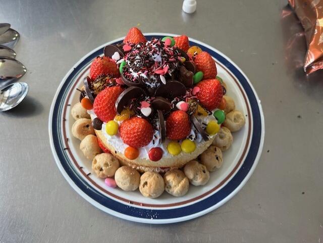 6年生は家庭科室でケーキ作りを楽しんでいました。彩り鮮やかでおいしそうでした。