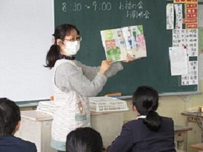 3月16日(木)朝、読み聞かせが「かっぱらっぱの会」による6年生のお別れ会として行われました。