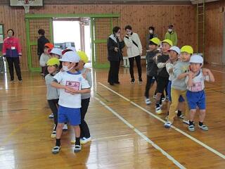 本日、1年生は敬愛保育園、糠峯保育園、玉名ルーテル幼稚園の園児を招いての交流会を行いました。1年生教室では、国語の学習で1年生がつくったクイズを園児が答えました。体育館では、混合リレーと集団行動を一緒に体験しました。