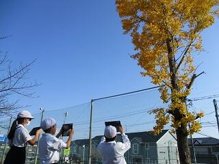 4年生は校庭を歩きながら、秋になって発見した自然の変化をタブレットに撮影しました。理科の学習で「季節の移り変わり・秋」で大人では気づかないたくさんの自然を見つけ喜んでいました。